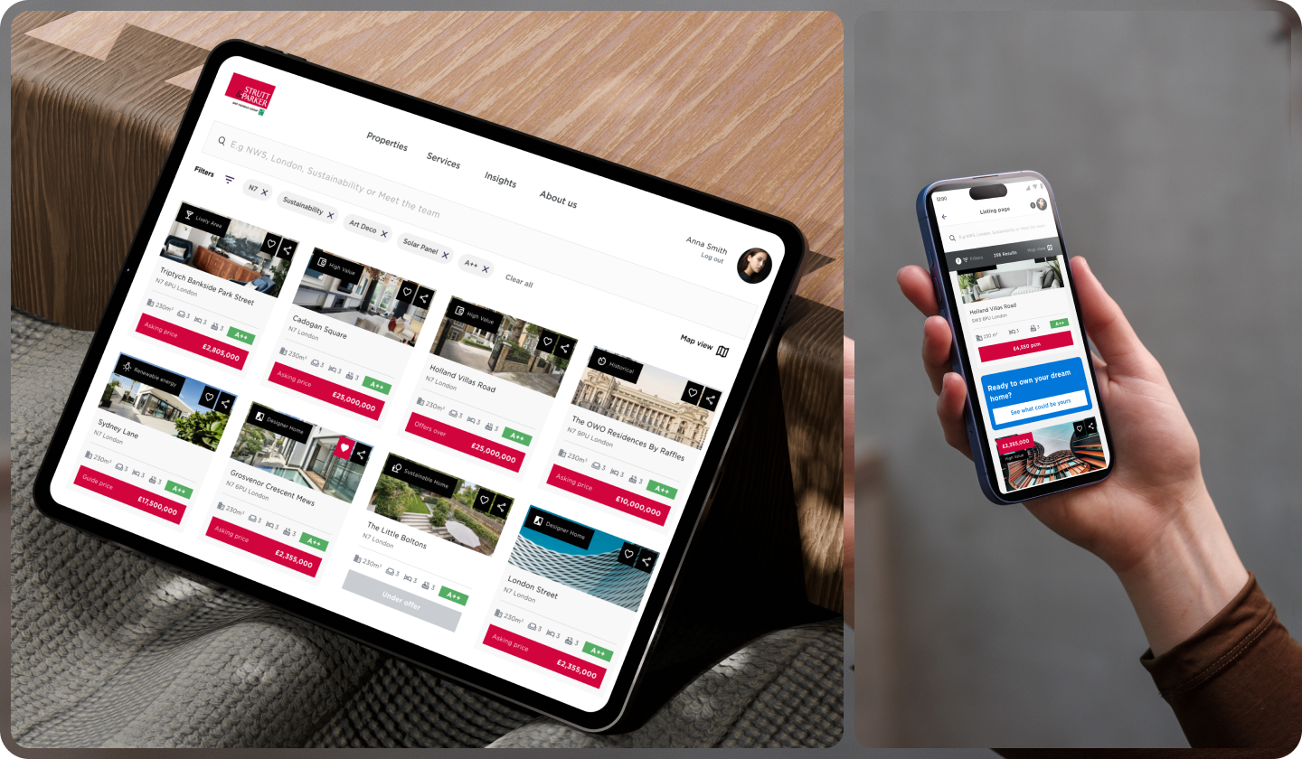 Strutt & Parker, a leading UK property agency, wanted a digital experience that matched their premium brand while truly serving buyers, sellers, tenants, and agents. This project combined a brand refresh, human-centered design, and AI-enhanced tools to deliver an engaging, scalable, and measurable web experience.