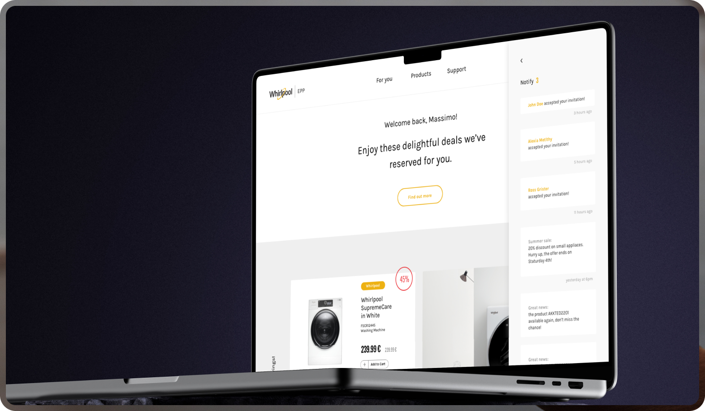 The platform transformed the internal shopping experience. Employees reported feeling more valued and engaged. Behavioural-driven content and personalised messaging made the platform feel responsive, human, and VIP‑like, while ensuring cohesion across Whirlpool’s multiple sub-brands.